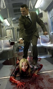 In goes Midnight Meat Train. And so begins my night of terror. As I sit on the couch, watching a butcher hone his craft, I wonder why boogie men have ceased to be monsters. Where are the days of Godzilla’s and Mothra’s? Gone are the creatures from space or black lagoons. You can’t even find a bad guy who kills for moral reasons. Using his killings to knock off the evil, pre-coital, cheating, lying bastards of the world, he serves a true noble purpose.